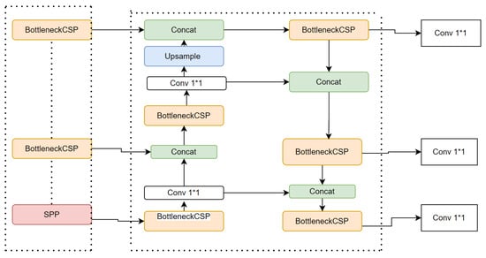 The YOLOv5 model in Figure 9 included three crucial components, similar to other single-stage object detectors.