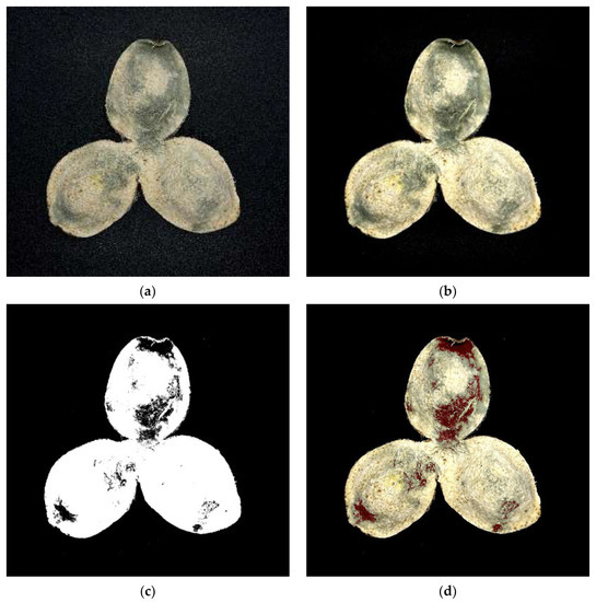 - Zhang, N.N.; Liu, W.; Wang, W.; Lu, W.L.; Yuan, N. Research on the detection method of corn grain mold degree based on image processing. Chin. J. Cereals Oils 2015, 30, 112–116. [Google Scholar]