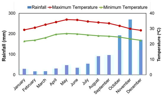 The annual rainfall of the Cauvery delta zone is 1051.27 mm, and it receives 50 percent of its annual rainfall during the northeast monsoon, majorly covering the months of October, November, and December. The zone is mostly warmer in April, May, and June, during which the temperature will reach 36 °C. Figure 2 shows the comprehensive climate profile of the Cauvery delta zone.