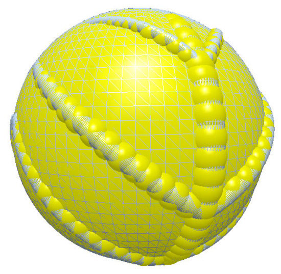 Due to the complex irregular geometries of cabbages, it is not feasible to simulate them directly using individual spherical simulation particles. In addition, because the cabbage leaf venation bulges outward, it is more vulnerable to contact damage during the harvesting process. Therefore, the cabbage was approximated as a structure composed of an internal sphere and some outer leaf veins. According to Table 1, the diameter of the internal sphere was set to 160 mm. The three-dimensional (3D) model of the cabbage was created in SolidWorks 2020, as shown in Figure 1.