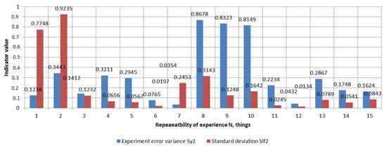 The statistical processing of the results of the experimental studies, according to the criteria и are shown in Figure 13.