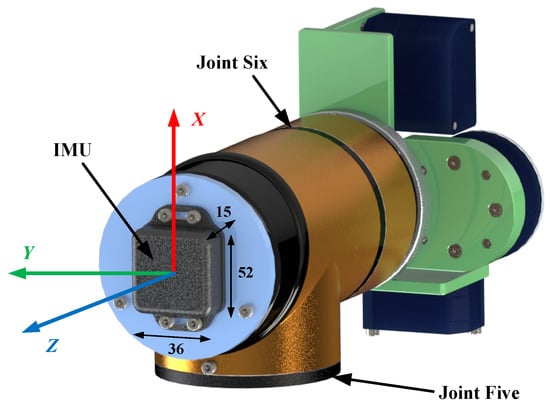 Algorithms integrating IMU and other sensor data have been widely applied in robotics. For instance, [] simulated human movement on a tandem robotic arm and systematically quantified the accuracy under static conditions and typical human dynamics. Multiple IMUs were used to assess the accuracy of orientation measurements based on data fusion algorithms. IMU-based human movement measurements are proving to be a valuable alternative to standard tools, such as stereo photogrammetry, due to their portability and flexibility. Ref. [] proposed a framework for mobile robot localization using a 2D laser scanner and an IMU, where laser and inertial data are fused for pose estimation. The proposed method performs more robustly than traditional geometry-based methods in challenging situations, such as moving with a large angular velocity. Hence, integrating an IMU with the robotic arm allows for accurate real-time sensing of posture and position.
