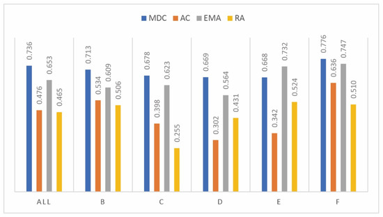 In addition, the impact of OP on RA in Clusters D and E was higher than that of AC, which is obviously different from the other three groups. The results show that compared with other groups, OP had a close relationship with marketing and sales services in Clusters D and E. Overall, Cluster F had the highest total value of structure coefficients. Except for RA (0.510), where its value was slightly lower than that of Cluster E, Cluster F’s MDC, EMA, and AC were all higher than those of other groups, indicating that through the corresponding value of organizational performance, this group can effectively show good results for LTFAs in sectoral functions, economic performance, and economic asset conditions. In addition, for Cluster C, the improvement of OP was limited in helping improve marketing and sales; additionally, for Cluster D it can be seen that there is room for improvement in the use of economic assets. Relevant results can provide reference for the decision makers when adjusting resource allocation or planning competitive business policies.