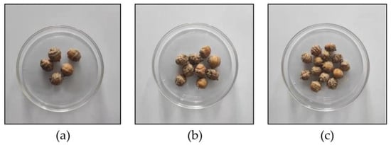 Cyperus esculentus samples: (a) large beans; (b) medium beans; (c) small beans.