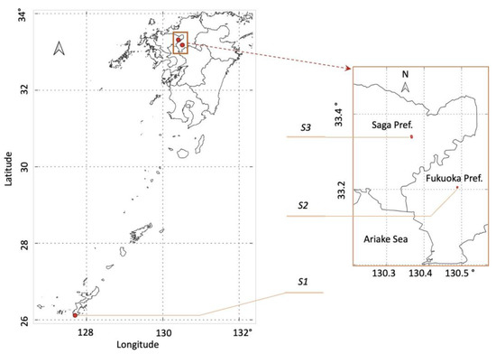 The study sites S1 and S2 were at the Okinawa Prefectural Agricultural Research Centre, Itoman, Okinawa, and the Kyushu Okinawa Agricultural Research Centre, NARO, Chikugo, Fukuoka, respectively. The measurement accuracy of the used measuring instruments was tested on S1 and S2, including the not-use GCP case. The S1 fields were typical uplands for growing sugarcane (Saccharum officinarum L.), with a slightly sloping ground surface within each field and grade elevation between fields, whereas the S2 and S3 fields were typical flat lowlands for growing crops suitable for a double cropping system.