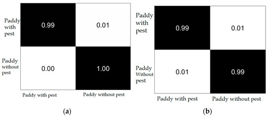 Figure 8 shows the binary classification results of Paddy with pest and Paddy without pest. The achieved outcomes are mentioned in Table 6.