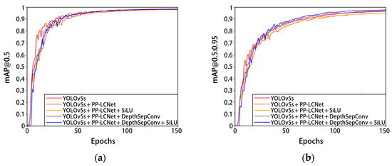 | YOLOv5s + PP-LCNet + DepthSepConv + SiLU | 640 × 640 | 88.1 | 98.5 | 4.8 | 9.0 | 272.8 |