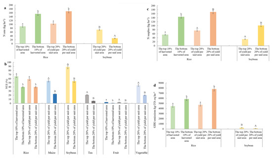 4.2. N Fertilizer Use on Multiple Crops at the County Scale in Fujian Province Compared with That in Other Regions