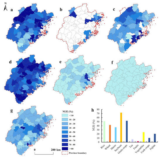 3.2. Analysis of NUE in Multiple Crops at the County Scale in Fujian Province