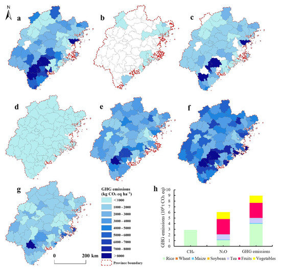 - Zhang, F.; Liu, F.B.; Ma, X.; Guo, G.Z.; Liu, B.; Cheng, T.H.; Liang, T.; Tao, W.L.; Chen, X.P.; Wang, X.Z. Greenhouse gas emissions from vegetables production in China. J. Clean. Prod. 2021, 317, 128449. [Google Scholar] [CrossRef]