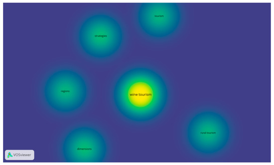 We applied VOSviewer to data obtained from the Web of Science database as early as 2019 to ensure that only hot topics are included to detect trends in wine tourism. We did not focus only on the top journals in this field, but used a keyword approach applied regardless of the source of the paper. Thus, brand management has been investigated using inclusion criteria based on thematic keywords found in more than twelve sources. Based on this, grouping could be developed. There are six major keyword clusters related to wine tourism in the most cited WOS articles from 2019–2023 (Figure 2), which we determined based on thematic clusters as:
