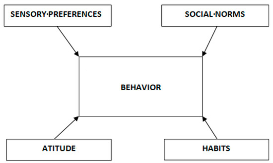 Thus, for the analysis of the 4 hypotheses (sensory preference, social norms, attitudes, habits) we calculated an index regarding the importance of each of the working hypotheses in the manifestation of consumption behavior. Based on the data provided by the respondents, we converted the linguistic qualitative assessments (unsatisfactory, satisfactory, average, good, excellent) into a vector of 3 numerical values (fuzzy triplet), because we used a triangular membership function.