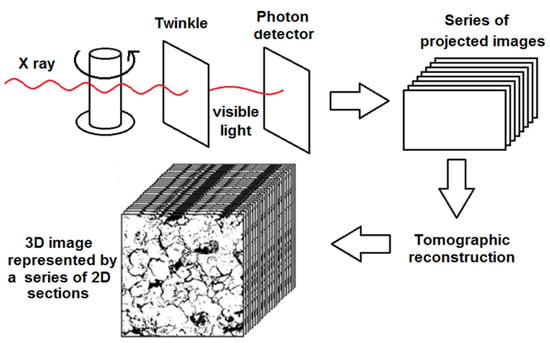 Schematic drawing of the image acquisition procedure using the X-ray Computed Tomography (XCT) technique.