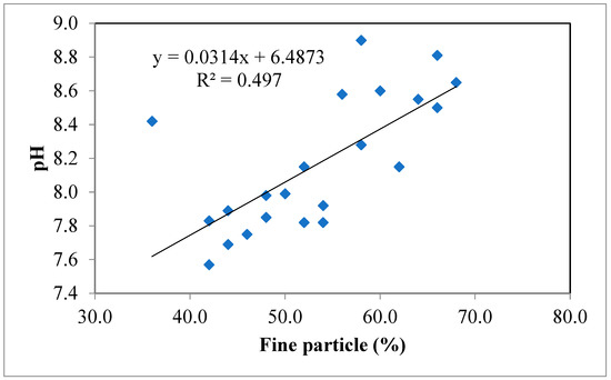 Relationship of fine particle (clay plus silt) with soil pH under different land use systems in semi-arid climatic conditions.