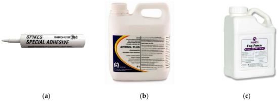 Chemical deterrents: (a) spikes adhesive; (b) Avitrol; (c) ReJeX-iT.