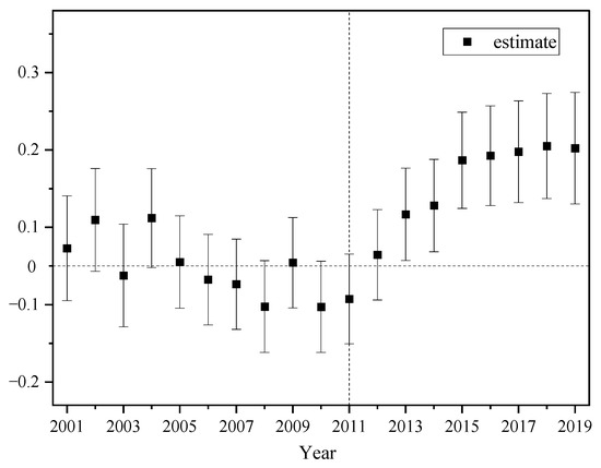 4.2.1. Parallel Trend Test and Dynamic Effect Analysis