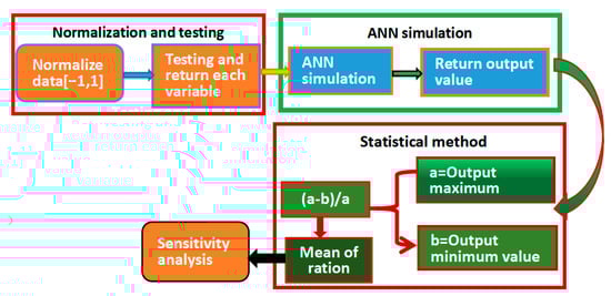 Notably, it is critical to preprocess the data into an appropriate format before applying it to the ANN. Preprocessing the data by scaling is crucial in ensuring that all variables receive equal attention during training. The output variables must be scaled to commensurate with the limits of the transfer functions used in the output layer. Although scaling the input variables is not necessary, it is often recommended [32]. Here, the input and output variables were scaled between −1.0 and 1.0, as the purelin sigmoidal transfer function was used in the output layer.