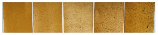 The collected samples were classified as Class 0 (no pesticide adherence, no fog droplets at all), Class 1 (0–1/4 area with pesticide adherence, less than 30 pcs/cm2), Class 2 (1/4–1/2 area with pesticide adherence, less than 60 pcs/cm2), Class 3 (1/2–3/4 area with pesticide adherence, less than 90 pcs/cm2), Class 4 (more than 3/4 area with pesticide adherence, more than 90 pcs/cm2). Corresponding to the fog droplet test cards in Figure 12 (from left to right).