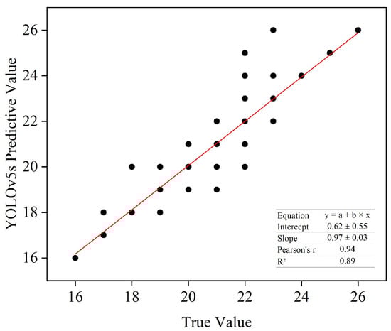 Statistical correlation between the predicted and true values of YOLOv5s.