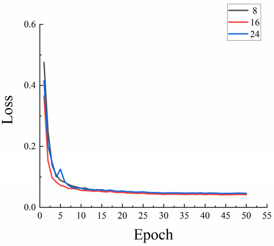 Figure 6 shows that batch sizes of 8, 16, and 24 may finish training when the graphics processor (GPU) is an NVIDIA GeForce GTX1650. However, if a batch size of 24 is selected, the model’s current device will get stuck back because it will not operate under normal conditions during training. When the batch size is 16, the model can achieve a lower loss value and converge more quickly. The model converges more quickly and can achieve a lower loss value when the batch size is 8, however, the utilization of hardware is insufficient. In conclusion, choosing a batch size of 16, within the permitted memory range, can produce superior training outcomes.