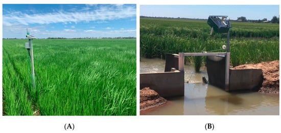 Increasing global water scarcity is fostering innovative practices aimed at improving agricultural water productivity, which is the practice of increasing or maintaining the amount of crop produced whilst maintaining or reducing the amount of water used. Rice is a highwater demanding crop, compared to other species [,,,], and is the largest water user, estimated to use between 34 to 43% of global irrigation water and 24–30% of freshwater resources []. Therefore, improving rice water productivity presents an opportunity to make a substantial impact on worldwide water use. Whilst moving from a traditional flooded rice system to water-saving irrigation practices, such as alternate wetting and drying or to aerobic rice with no flooding, has been proven to increase water productivity in many parts of the world [,,,,,,,], adoption in Australia is limited due to lack of cold tolerant varieties and weed and fertilizer management strategies []. Furthermore, a substantial increase in labor is required for the high frequency irrigation necessary in a semi-arid climate. Automated irrigation has been identified as a potential solution to overcome the labor burden and enable greater adoption of water-saving irrigation practices. In a global review of automated gravity surface irrigation in rice since 1999, Ref. [] found only one system [] that was tested and deemed adequate for use in a commercial setting. The commercially available automated irrigation used in a flooded rice farm in Italy showed substantial economic labor savings, with a payback period of 14 years, despite no water saving or yield benefits []. Whilst the cost for automation was reported within the range Italian farmers are willing to spend, there is little evidence of widespread adoption, potentially due to cost or other technical limitations relating to the technology. Of the systems reviewed by [], none were found to be appropriate for non-flooded rice systems, with many found to be unsuitable for commercial-scale ponded-rice systems due to technical shortcomings. The main limitations identified include a lack of non-ponded water control, small scale water delivery, unregulated flow control, cumbersome infrastructure, AC power required, cost, limited connectivity range, manual or no water threshold configuration and lack of weather and crop forecasting.