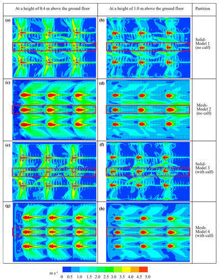3.2. Comparison of Airflow Speed Distribution Results in Models 1–4