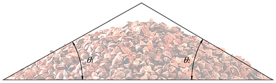 where θ is the repose angle, (°); θ1 is the left repose angle, (°); and θ2 is the right repose angle, (°).