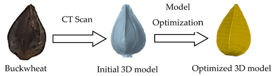 The buckwheat seeds were scanned using an industrial-grade CT imaging system (nanoVoxel128007030108) to obtain an initial 3D model, as shown in Figure 5. The Geomagic Wrap software was used to smooth the sharp edges and points in the process of model optimization.
