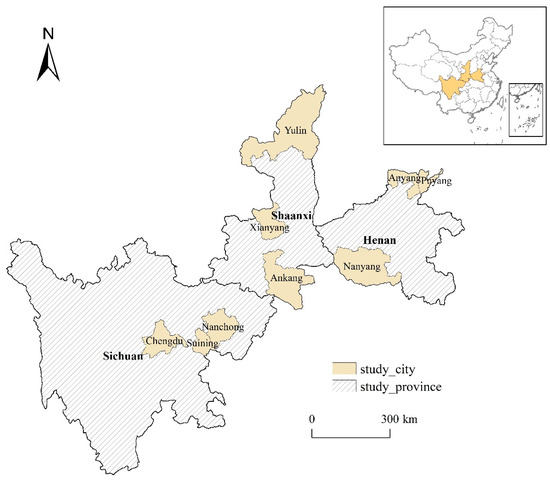 A stratified sampling method was adopted to collect the empirical data. The data used for this study came from a survey of farm households in the Henan, Shaanxi and Sichuan provinces in July and August 2018 by the Rural Revitalization and Talents in the Countryside project team. A total of nine prefecture-level cities were selected for the comprehensive study: Anyang, Nanyang and Puyang in Henan Province, Yulin, Xianyang and Ankang in Shaanxi Province and Nanchong, Suining and Chengdu in Sichuan Province, the survey regions are shown in