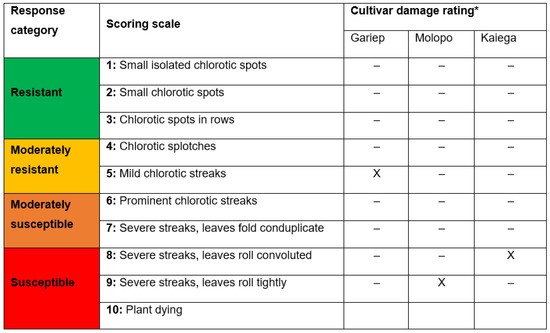 - Tolmay, V.; Van Deventer, C.; Van Der Westhuizen, M. Inheritance of resistance to Russian wheat aphid, Diuraphis noxia (Homoptera: Aphididae) in two wheat lines. S. Afr. J. Plant Soil 1999, 16, 127–130. [Google Scholar] [CrossRef]