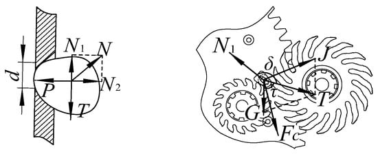The combined force T of the seed gravity, centrifugal force, and the hole’s supporting force N1 acting in a direction parallel to the seed-metering device can be written as follows: