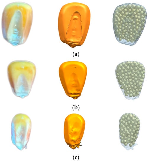 Simulation models of the corn seeds. (a) Big flat; (b) Medium flat; (c) Small flat.