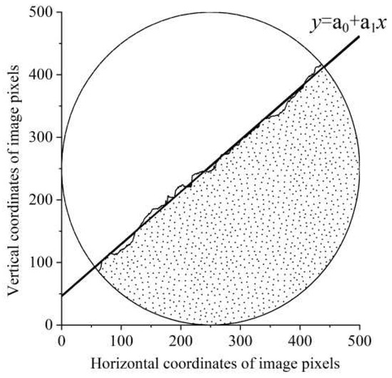 Figure 3. The dynamic angle of repose measurement. Note: fit the linear equation based on the least square method: y = a0 + a1x; the coefficient of the linear equation: a0, a1; the dynamic angle of repose: σ = arctan(a1).