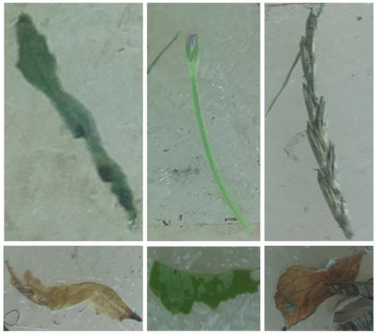 To train the DNN, it was crucial to define the classes or the target objects on the images for their detection. The first class is the most significant and represents the targeted pest species, the codling moth. It is referred to as MOTH throughout the rest of the paper (Figure 4). The second class, referred to as INSECTS, identifies all non-target insects captured by the adhesive pad (Figure 5). The third class, referred to as OTHER, represents all other objects identified on the adhesive pad, such as dirt, twigs, leaves, etc. (Figure 6).