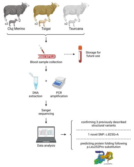 Furthermore, no definitive relationship was determined between the novel c.825G>A mutation and litter size. Future research, eventually evaluating its impact on mRNA structure and processing, could reveal if there is any association between this SNP and litter size in larger Cluj Merino populations.