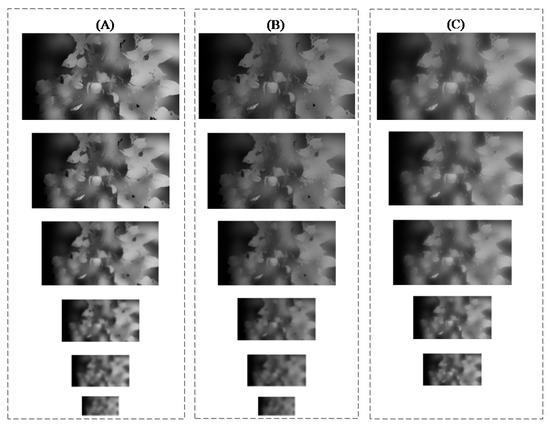 By applying the BF technique, we optimized the disparity maps which were obtained in the previous step with different resolutions. Detailed information is shown in Figure 9.