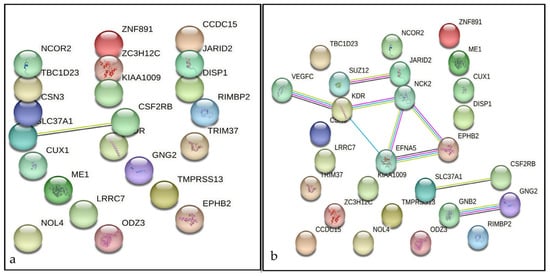 - Pegolo, S.; Dadousis, C.; Mach, N.; Ramayo-Caldas, Y.; Mele, M.; Conte, G.; Schiavon, S.; Bittante, G.; Cecchinato, A. SNP co-association and network analyses identify E2F3, KDM5A and BACH2 as key regulators of the bovine milk fatty acid profile. Sci. Rep. 2017, 7, 17317. [Google Scholar] [CrossRef] [PubMed]