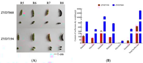 - Kim, J.-A.; Chung, I.-M. Change in isoflavone concentration of soybean (Glycine max L.) seeds at different growth stages. J. Sci. Food Agric. 2007, 87, 496–503. [Google Scholar] [CrossRef]