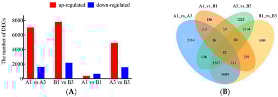3.3. Identification of DEGs of ZYD7068 and ZYD7194 at Different Stages