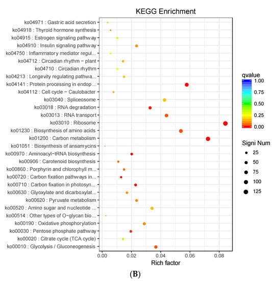 2.9. Quantitative Real-Time PCR (qRT–PCR) Verification