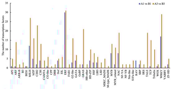 3.5. Different Expression Patterns of Transcription Factors in Two Genotypes at Different Stages