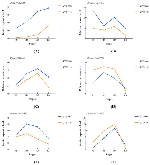 3.2. Transcriptome Profiles of ZYD7068 and ZYD7194 at R6 and R8 Stages