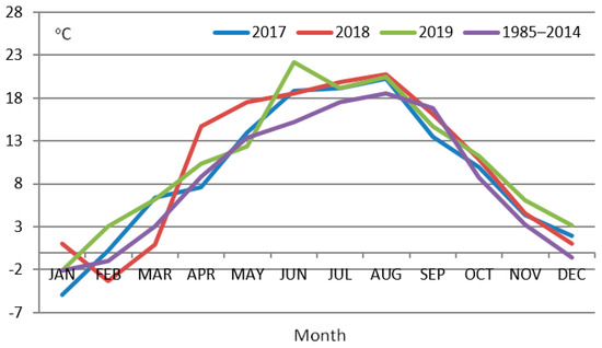 Then, the temperature and precipitation conditions during pea growth were characterized according to the ranges of values proposed by Skowera and Puła [28]: K ≤ 0.4—extremely dry (ed); 0.4 < K ≤ 0.7—very dry (vd); 0.7 < K ≤ 1.0—dry (d); 1.0 < K ≤ 1.3—quite dry (qd); 1.3 < K ≤ 1.6—optimal (o); 1.6 < K ≤ 2.0—quite wet (qw); 2.0 < K ≤ 2.5—wet (w); 2.5 < K ≤ 3.0—very wet (vw); and K > 3.0—extremely wet (ew). Selyaninov’s coefficient was used to define the optimal moisture and periods of drought [29]. The coefficient was used to characterize the years in terms of soil drought.