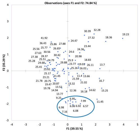 Principal component analysis of wheat metabolome on 4 dai (components by retention time).
