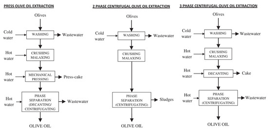 - Souilem, S.; El-Abbassi, A.; Kiai, H.; Hafidi, A.; Sayadi, S.; Galanakis, C.M. Olive Oil Production Sector: Environmental Effects and Sustainability Challenges. In Olive Mill Waste: Recent Advances for Sustainable Management; Elsevier Inc.: Amsterdam, The Netherlands, 2017; pp. 1–28. [Google Scholar] [CrossRef]
