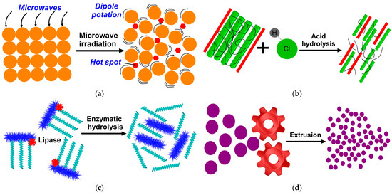 Examples of pretreatment: (a) thermal, (b) chemical, (c) biological, and (d) physical.
