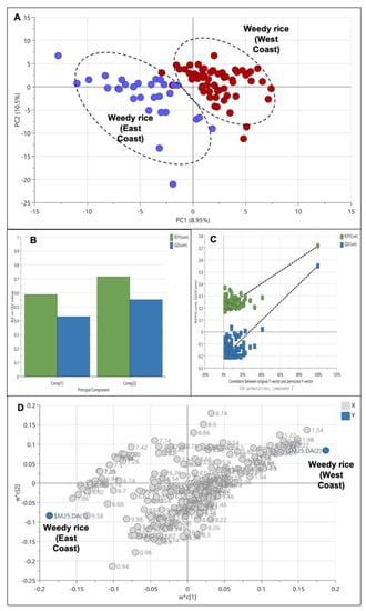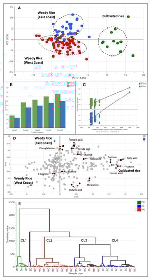 3.1. Comparative Metabolomics Analysis of Weedy Rice and Cultivated Rice