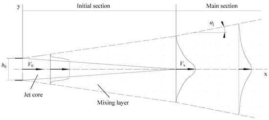 - The trajectory and position of the air jet axis comply with the condition of the physical model for either counter-moving supply air jets interaction or for a single air jet in a plane perpendicular to the flow (see Figure 6);