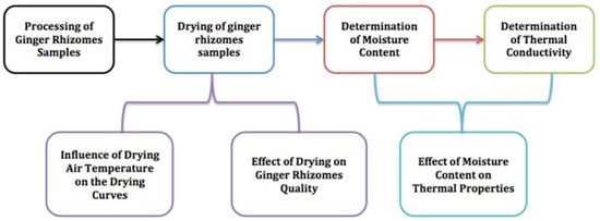 While our study is centred on the convective drying of ginger rhizomes, it is important to note that other scholars have applied various drying methods to different food substances. For example, Çelik and Kenanoğlu [17] researched aubergine seeds, Zhang et al. [18] on tiger nuts, and Akther et al. [19] on mango powder. These investigations were valuable in their contexts, providing significant insights into the drying processes of these individual food items. However, it is noteworthy that none of these studies explored the specific convective drying method we have employed in our research. As such, our investigation fills a knowledge gap in the study of convective drying processes, specifically focusing on the effects of moisture content on the thermal properties of ginger rhizomes.