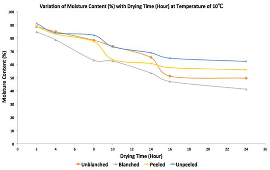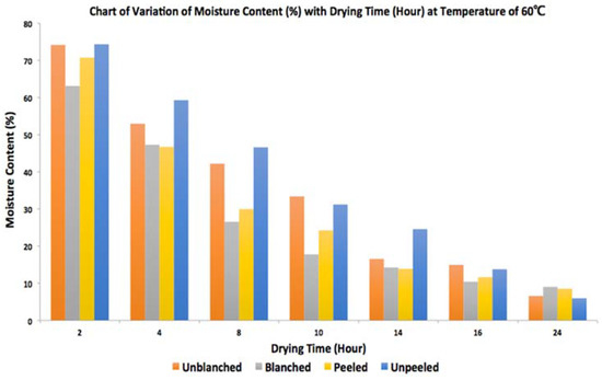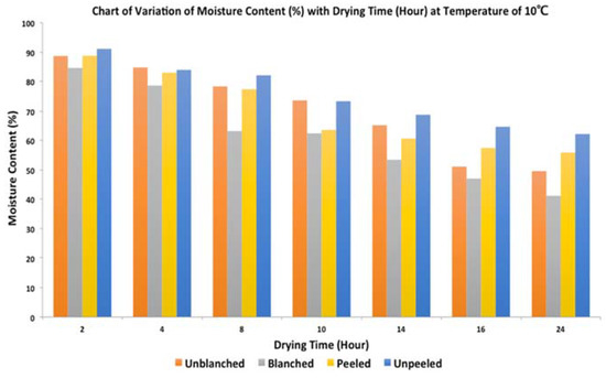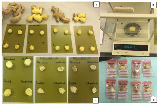 The ginger’s initial moisture content (wb) was then calculated using Equation (1). This experiment consistently utilised the moisture content on a wet basis.